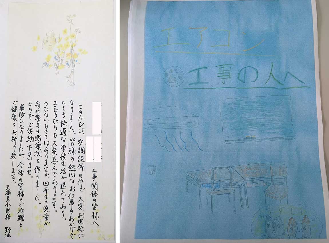 この度、弊社が空調設備工事を施工させていただきました小学校の校長先生からお手紙をいただきました。施工した職人にとっても大変思い出に残る現場になり、こうした声が直接聞けることがやりがいになっています。